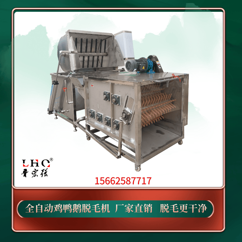 焦做全从动鸡烫脱一体机 新款鸡打毛机总长度2.7米宽1.6米高1.4米、配备的电机都是国标铜线的、烫毛机搅拌电机功率1500w、脱毛机电机功率2200w、加热管功率28kw、而且处置出来的白条鸡清洁标致、而且设备是能够持续工做的、节流了人工、提高了效率。并且能用于分歧品种的鸡进行加工处置的、按照鸡的品种分歧设置响应的烫毛温度、烫毛时间、脱毛时间、确保每只鸡都能够处置的清洁标致。